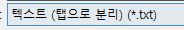 저장은 엑셀에서 탭으로 분리로 저장 합니다.