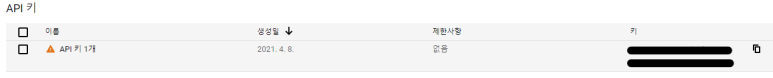 API 사용을 위한 키가 생성됩니다.