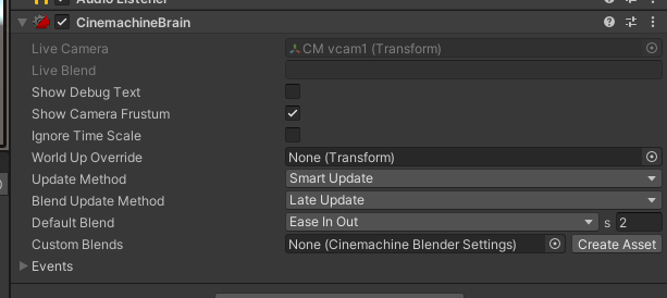 CinemachineBrain은 이름에서도 알 수 있듯이 여러대의 카메라를 컨트롤 해주는 컨트롤 타워 역할을 해 주는 객체이고