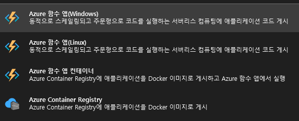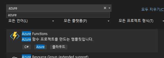 우측 상단에 검색창에서 azure를 검색하면 Azure Functions 를 선택 해 줍니다.