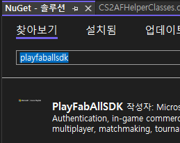 PlayFabAllSDK 를 검색해 주고 설치해 줍니다.