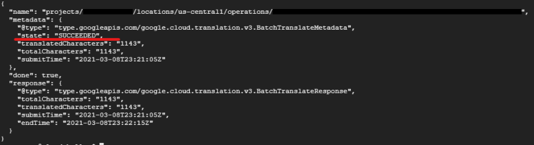 SUCCEEDED 로 뜨면 번역이 완료 된 것입니다.